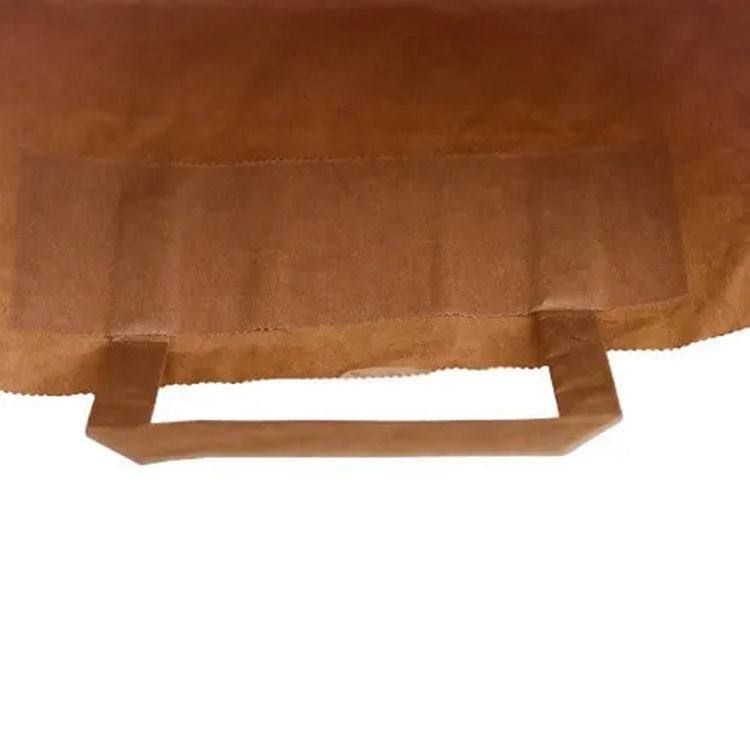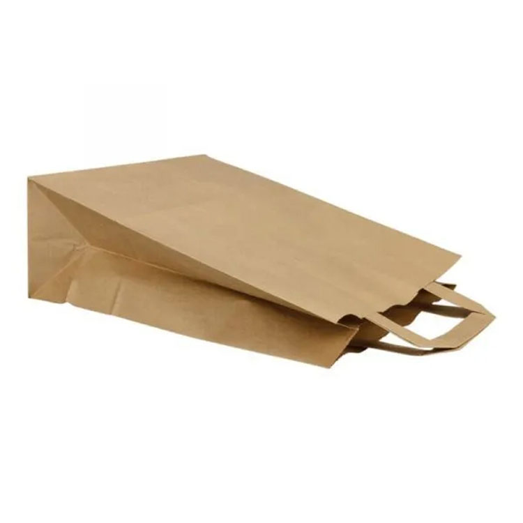 Kantong kertas Kraft dengan pegangan kertas datar dapat digunakan dalam industri katering, di supermarket dan sebagai hadiah. Mereka terbuat dari bahan yang kuat dan tahan lama, dapat digunakan kembali beberapa kali, kompos dan dapat terurai secara hayati.